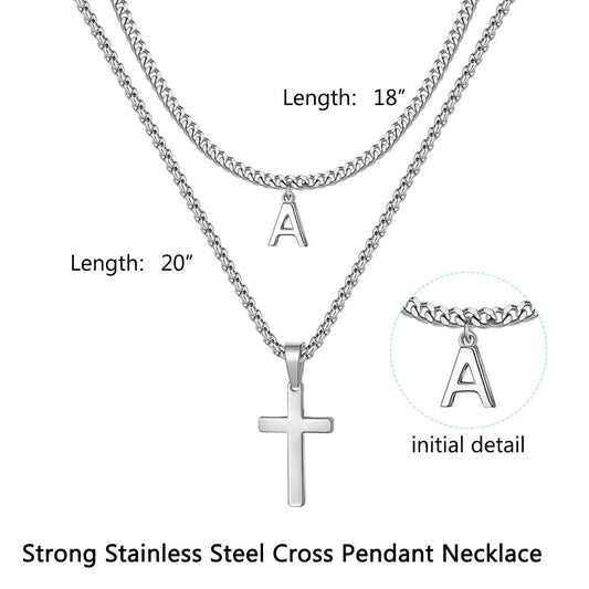 Layered Cross Necklace for Men Stainless Steel Chain Cross Initial Pendant Necklace Cuban Link Chain Necklaces for Men Women Fathers Day Gifts